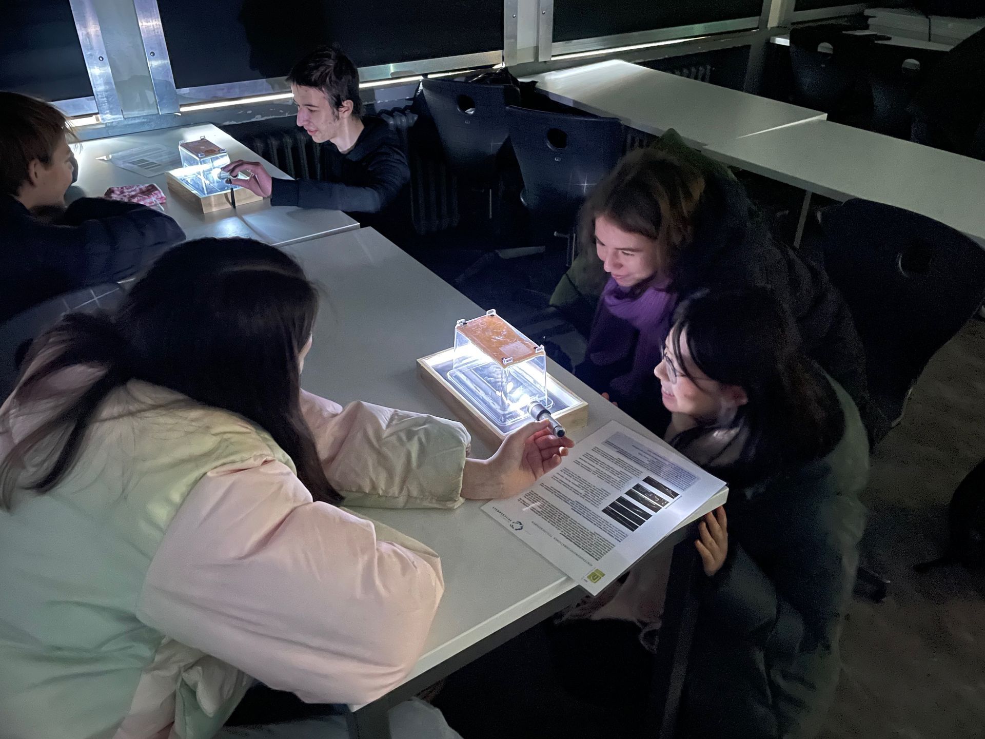 Ein besonderer Höhepunkt des Tages war das Bauen unserer eigenen Nebelkammer. Mit Trockeneis, Styroporkisten, Isopropanol und mehr konnten wir die Bewegungen von Alpha-Teilchen und Myonen sichtbar machen. Es war äußerst faszinierend, die Theorie in der Praxis zu beobachten.